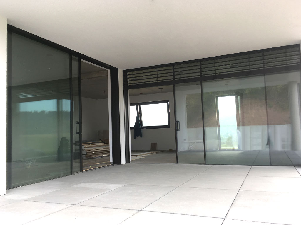 - Elegantes Schiebesystem mit verdeckten Führungsschienen: Das Rahmensystem der Serie S 650 lässt sich in das Mauerwerk integrieren und der Flügel liegt verdeckt auf den Führungsschienen. Somit wird eine fast uneingeschränkte Aussicht garantiert. Maße B/H: 4,50 x 3,00m