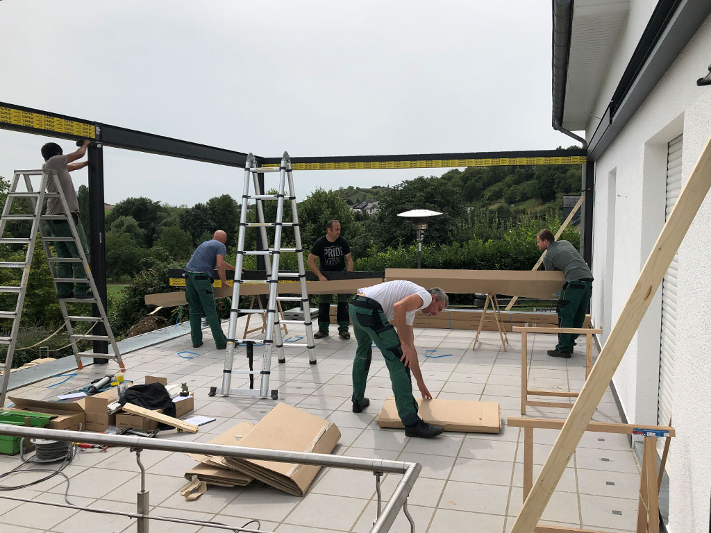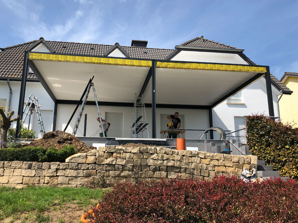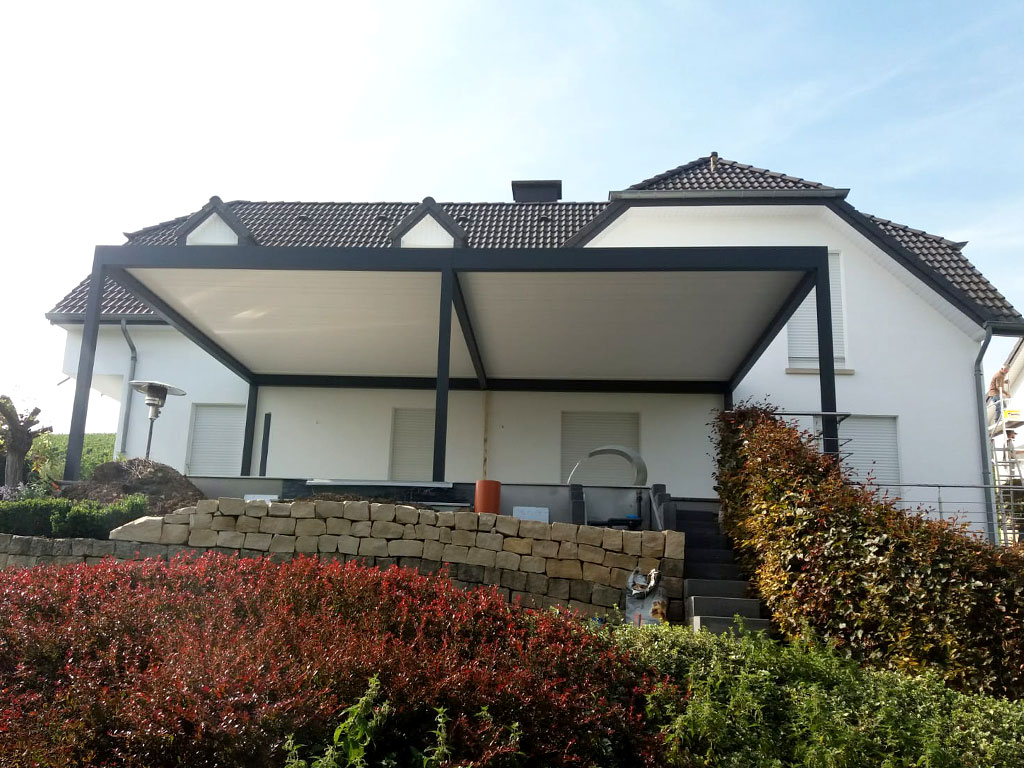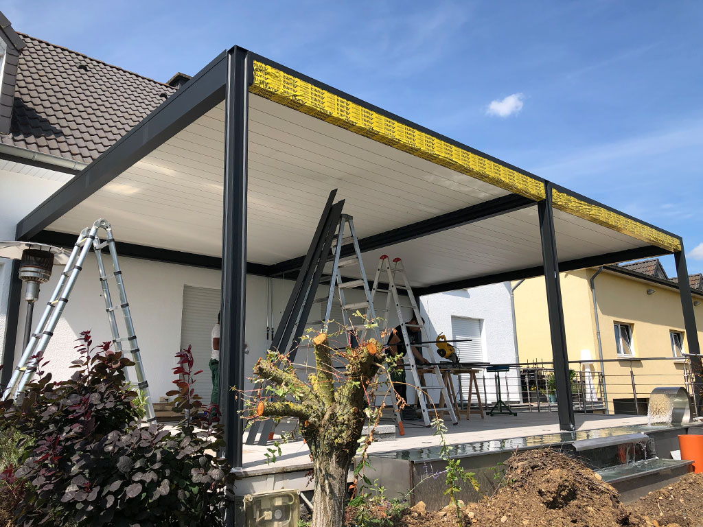 - Pergola mit Glastüren in der Größe 8,5m x 8,0m